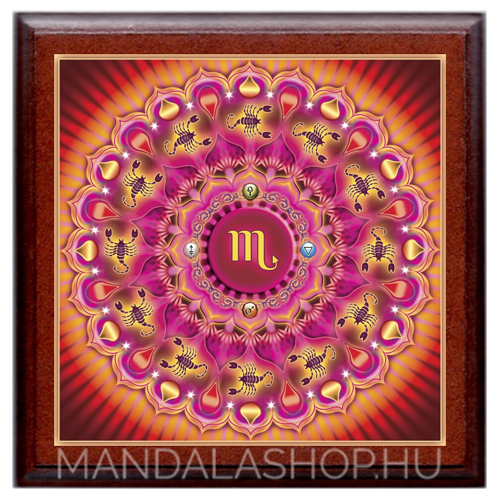A Skorpió jegy mandalája azok számára hasznos, akik szeretnének rendkívüli energiákkal és képességekkel rendelkezni, céltudatosan, kitartóan és szenvedélyesen élni, kimeríthetetlen munkakedvvel rendelkezni, szilárd anyagi alapokat létrehozni, erős külső-belső védelmet kiépíteni maguk és családjuk számára. Segíthet azoknak, akik enerváltnak és gyengének érzik magukat, elveszítették érdeklődésüket, mert új utakat nyithat, kutató szelleme a halál és újjászületés misztériumán keresztül emelkedik egyre feljebb.